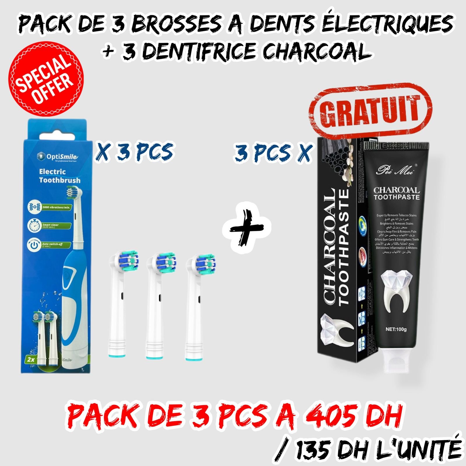 BROSSE A DENTS ELECTRIQUE AVEC PILES { AVEC 3 TETES } X 3 PCS + 3 PCS CHARCOAL