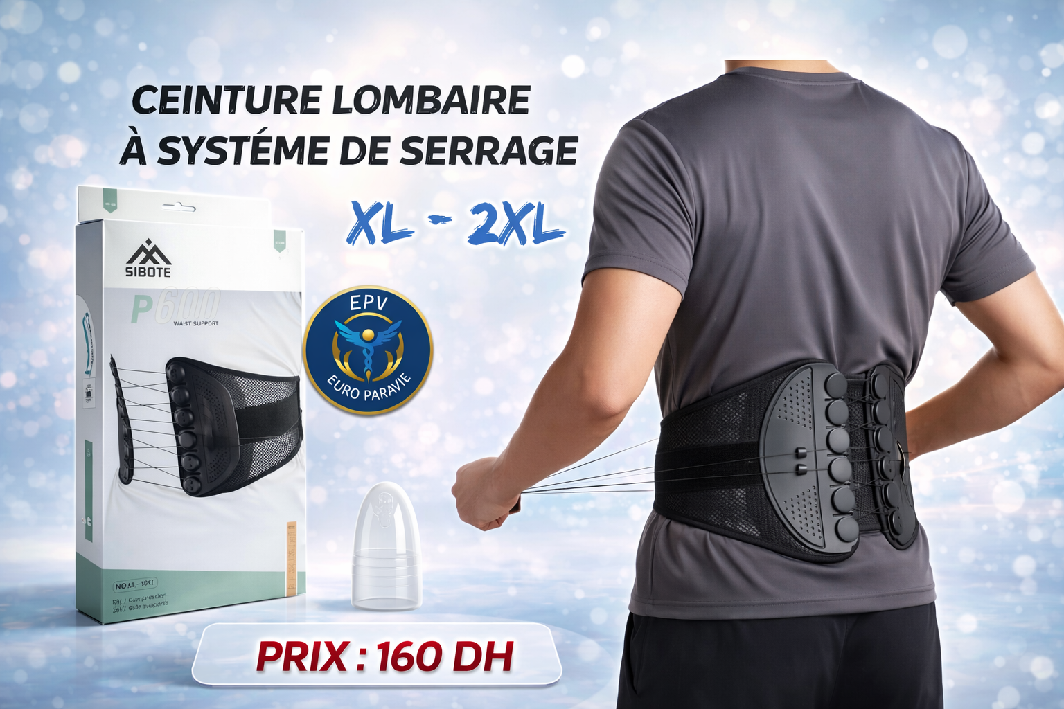 • *La ceinture lombaire à double traction avec système de serrage rapide applique une compression homogène sur la zone lombaire afin de stabiliser le bas du dos et limiter les tensions lors des efforts ou des positions prolongées.