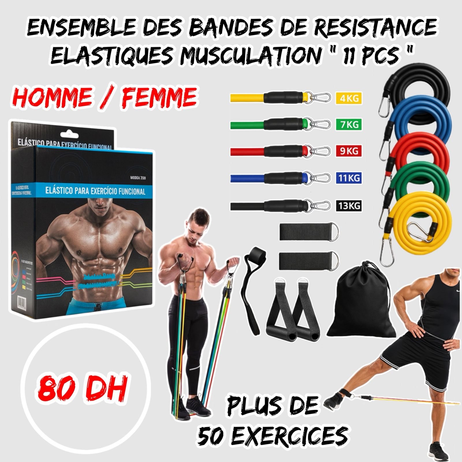 ENSEMBLE DES BANDES DE RESISTANCE ELASTIQUES 11 PCS