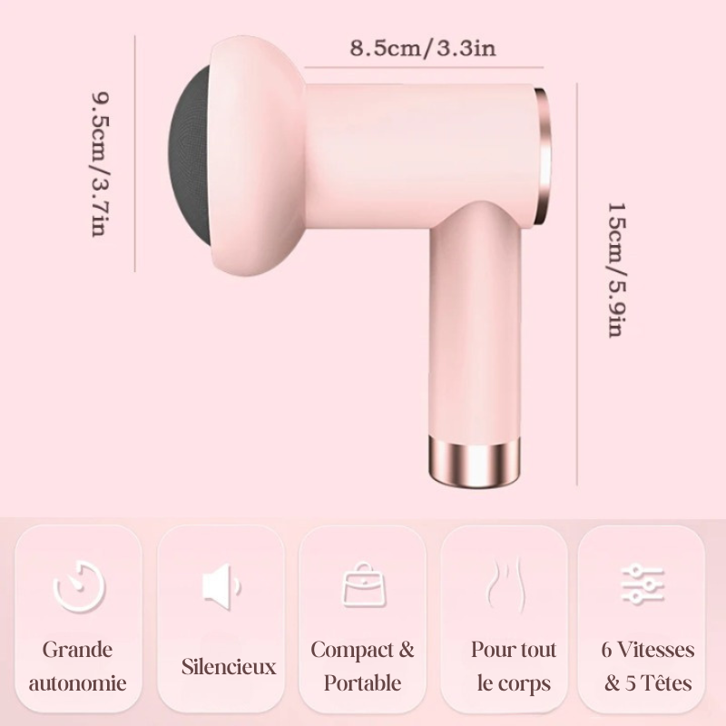 Gâtez vos muscles après une longue journée avec ce pistolet de massage électrique de couleur rose tendance. Avec plusieurs embouts et vitesses pour un massage musculaire en profondeur où et quand vous le souhaitez.