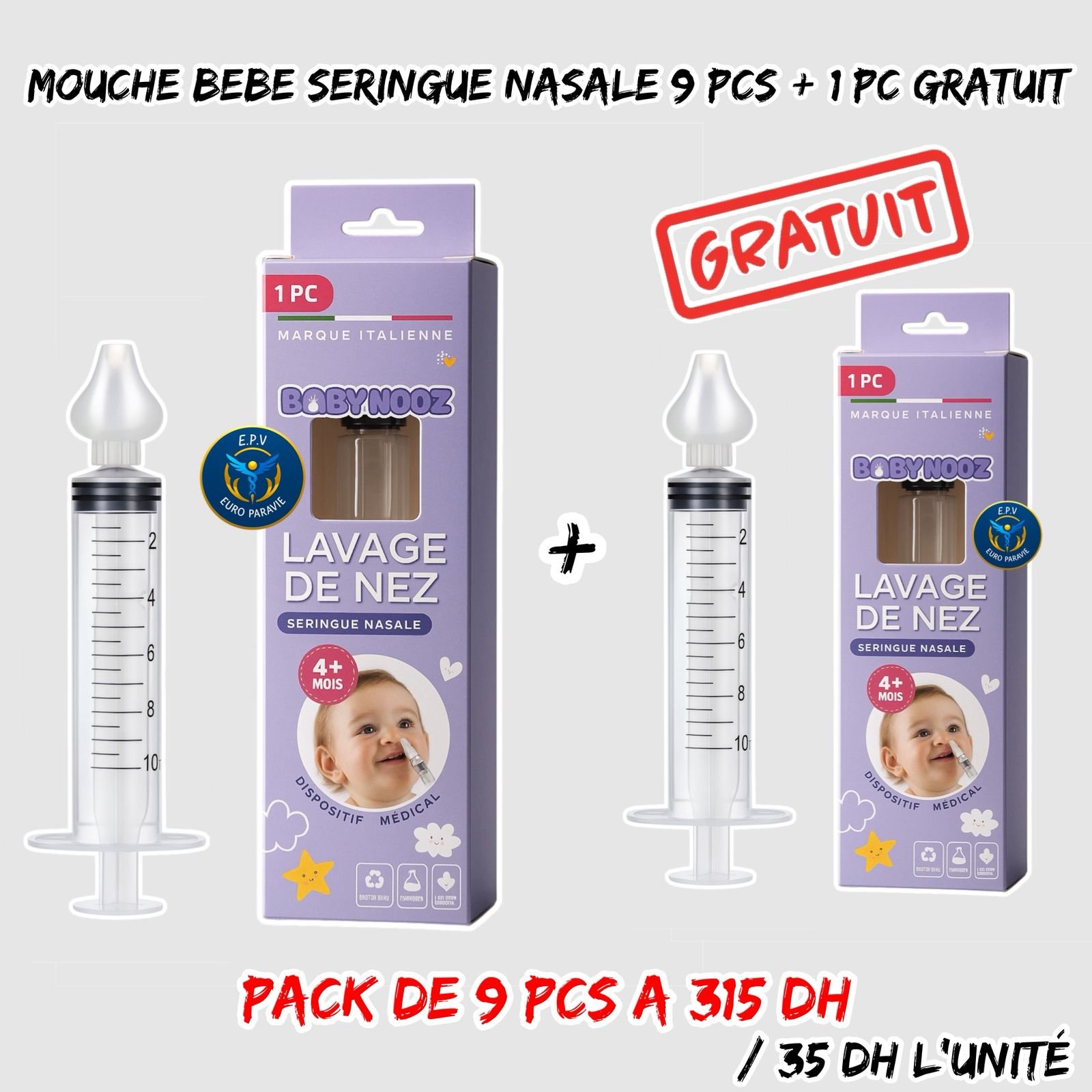 MOUCHE BEBE SERINGUE NASALE 9 PCS + 1 GRATUIT