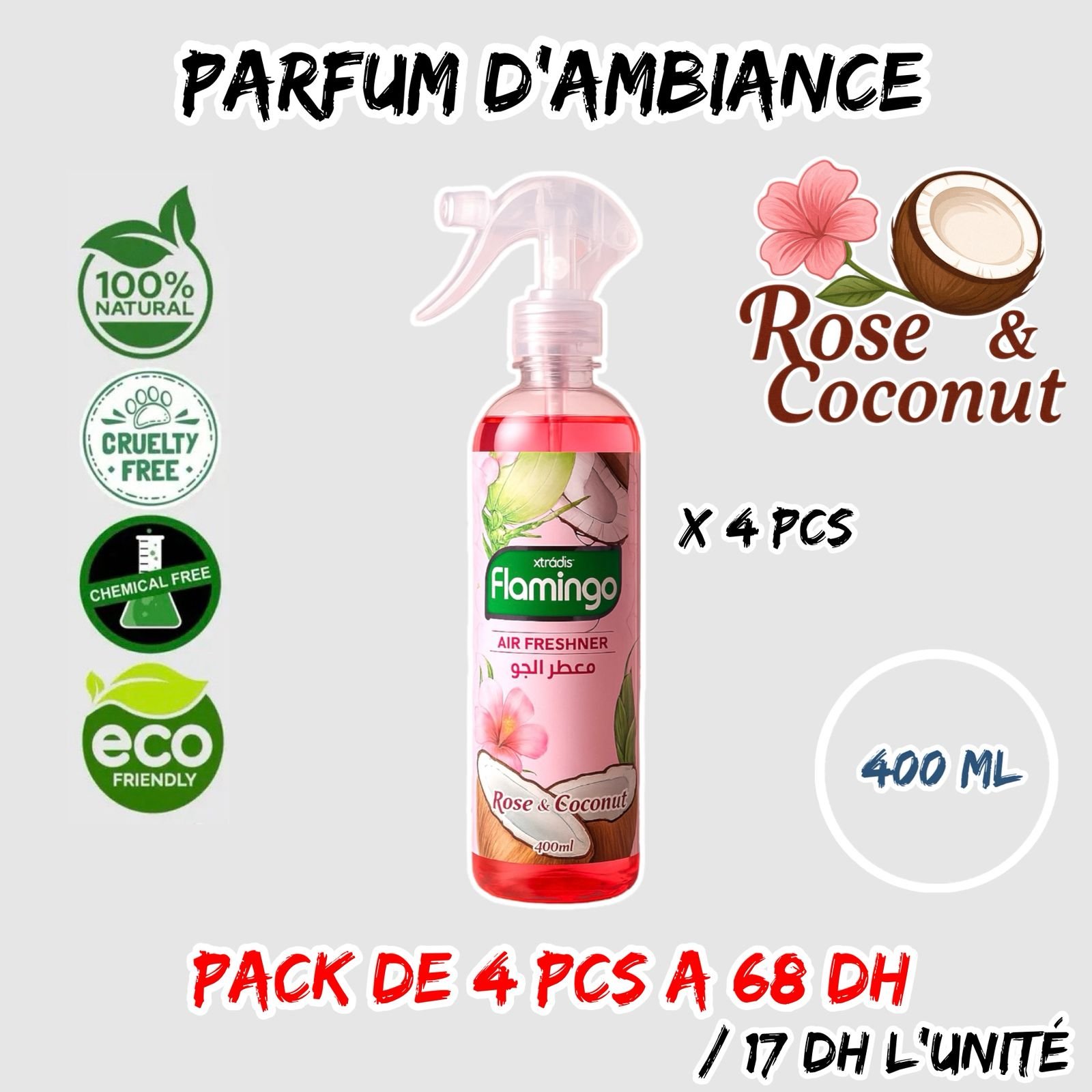 PARFUM D’AMBIANCE 400 ML { DESODORISANT ROSE / COCONUT }
